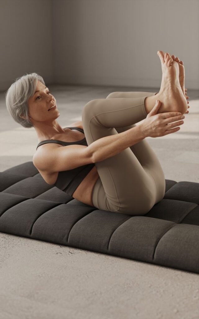 If you can’t reach the ankle yet, don’t worry — simply hold your left knee.